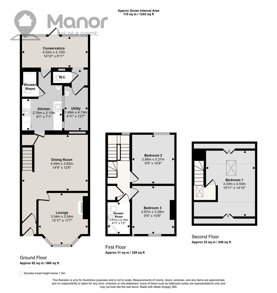 The Ground floor comprises of a lounge, double bedroom, fitted kitchen, shower room, conservatory, additional w/c and rear garden. The first floor has a modern shower room, two bedrooms and ample amounts of storage space. The second floor has a double bedroom.